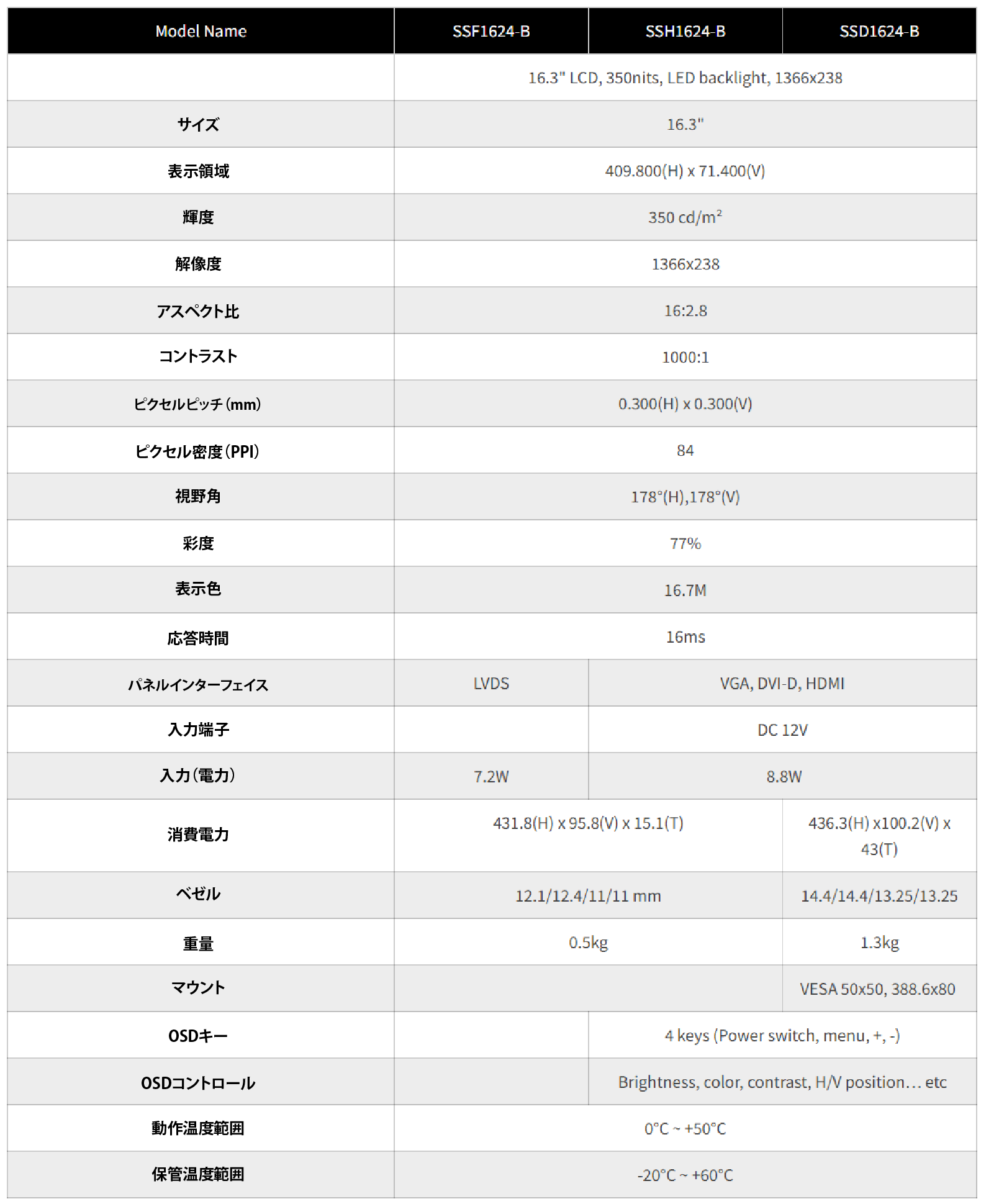 16.3インチ、解像度1024×250のウルトラワイド液晶ディスプレイ。