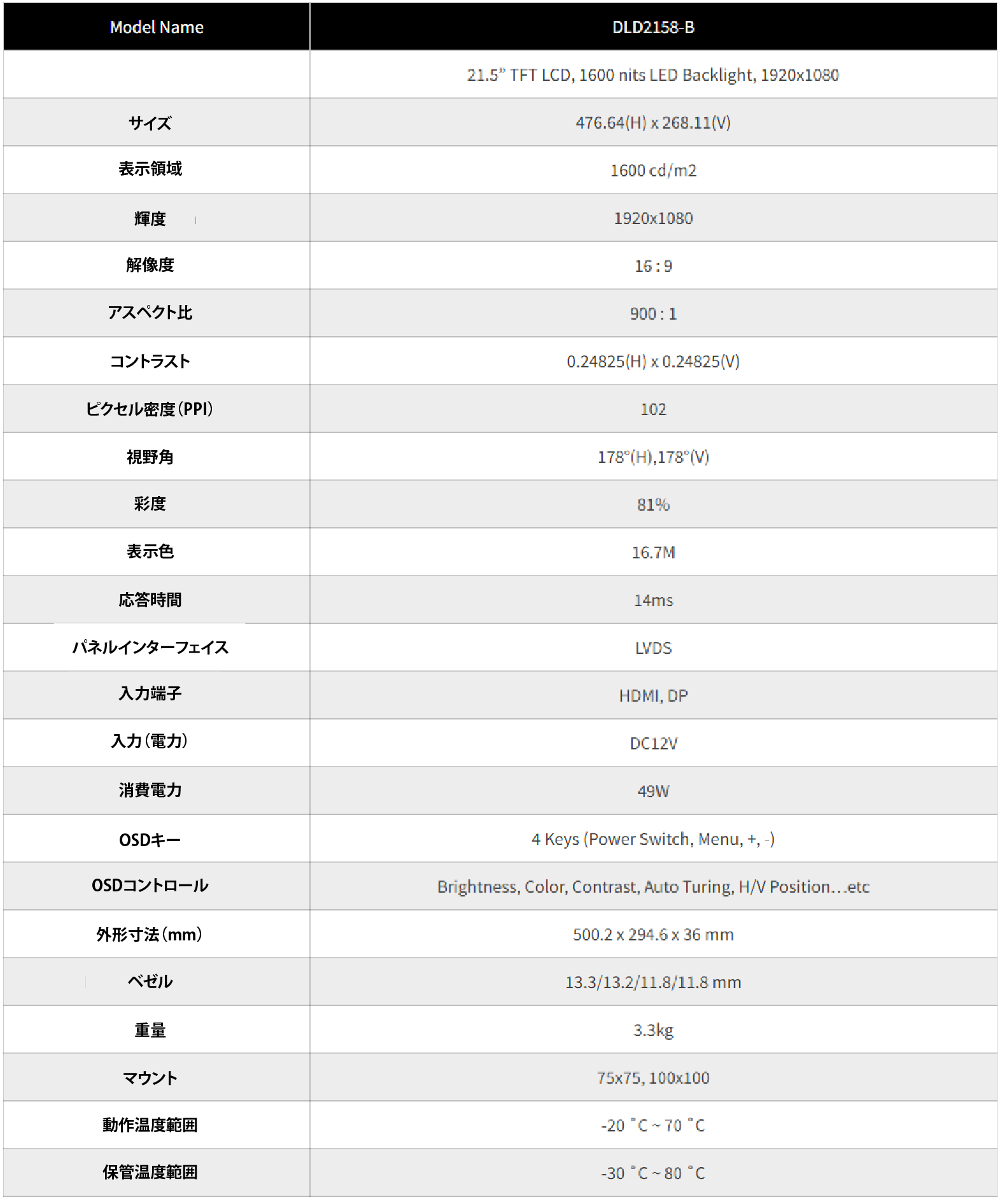 21.5インチ LITEMAX Durapixel 2158-B (1600cd/m²)