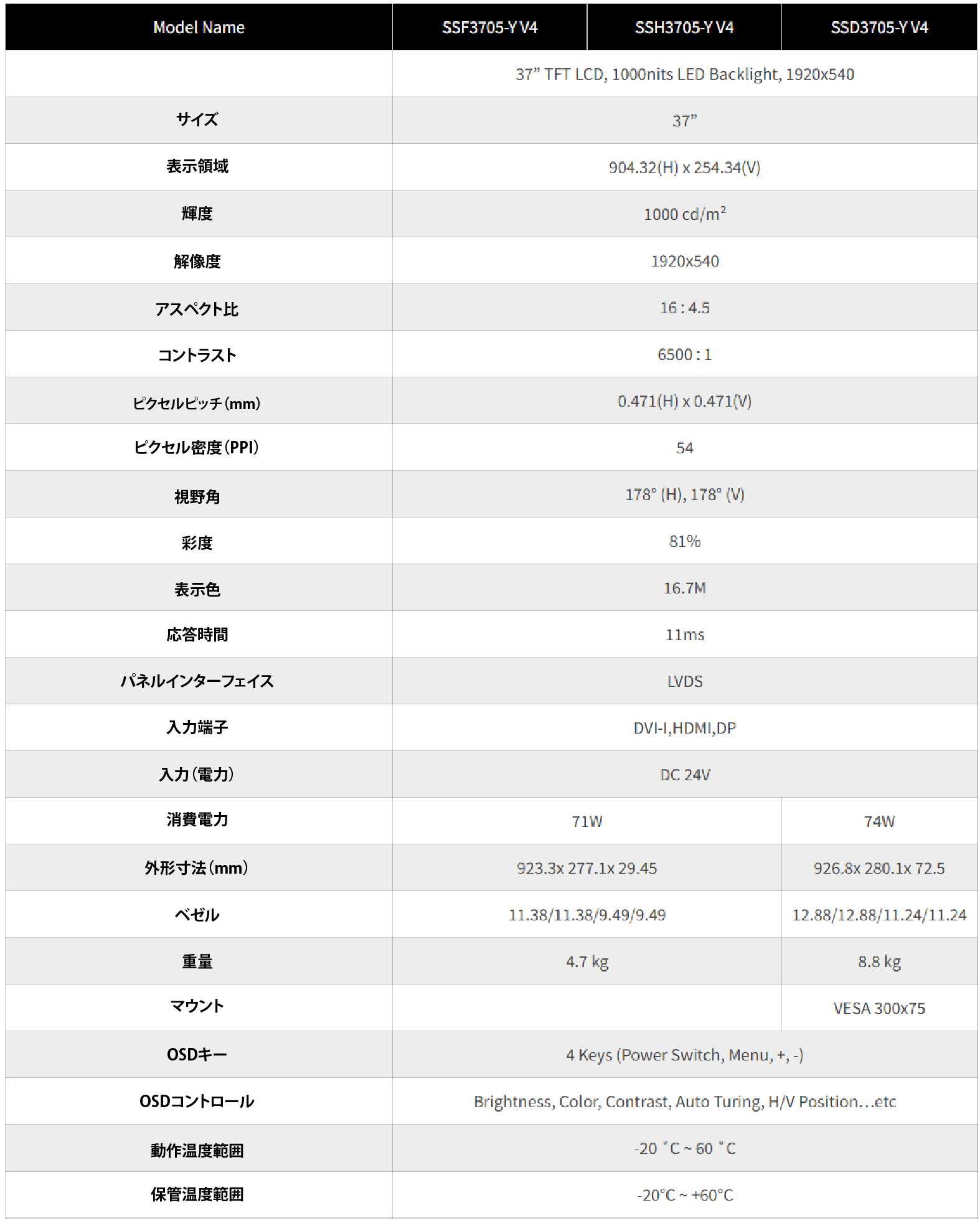 37インチ、1000nits、解像度1920×540のウルトラワイド液晶ディスプレイ。