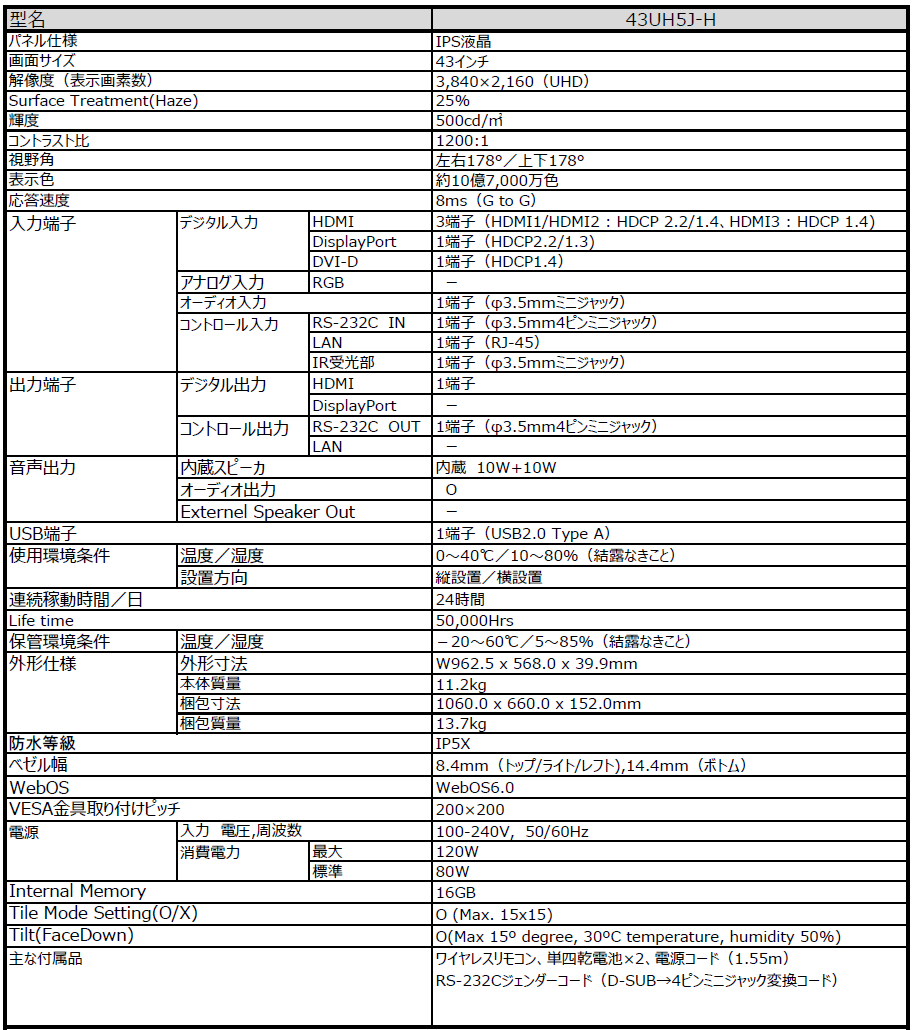 WebOS搭載4Kサイネージ