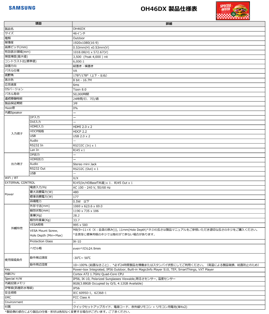 ・3,500nit (最大4,000nit) の高輝度モデルで昼間でも高い視認性