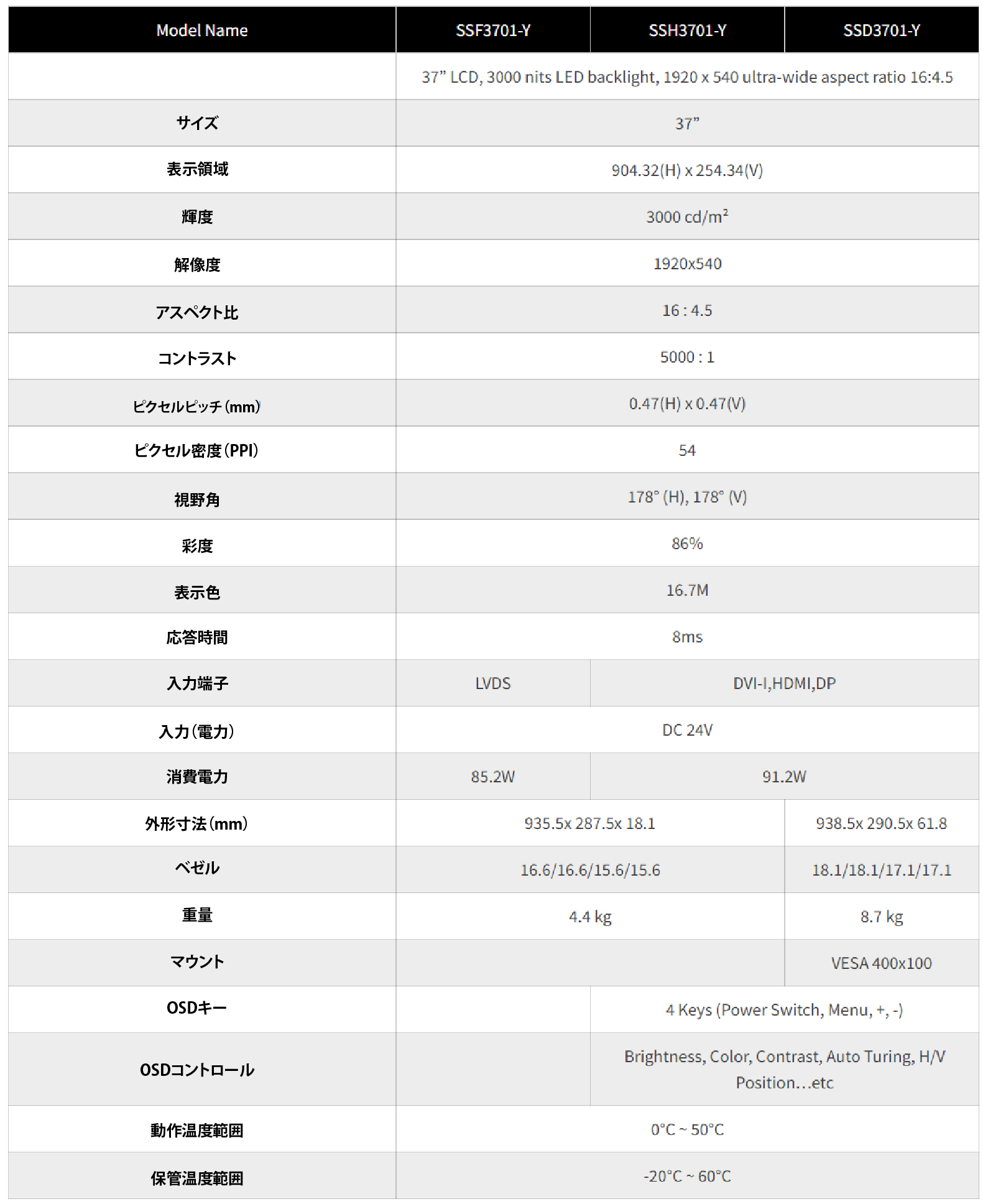 37インチ、3000nits、解像度1920×540のウルトラワイド液晶ディスプレイ。