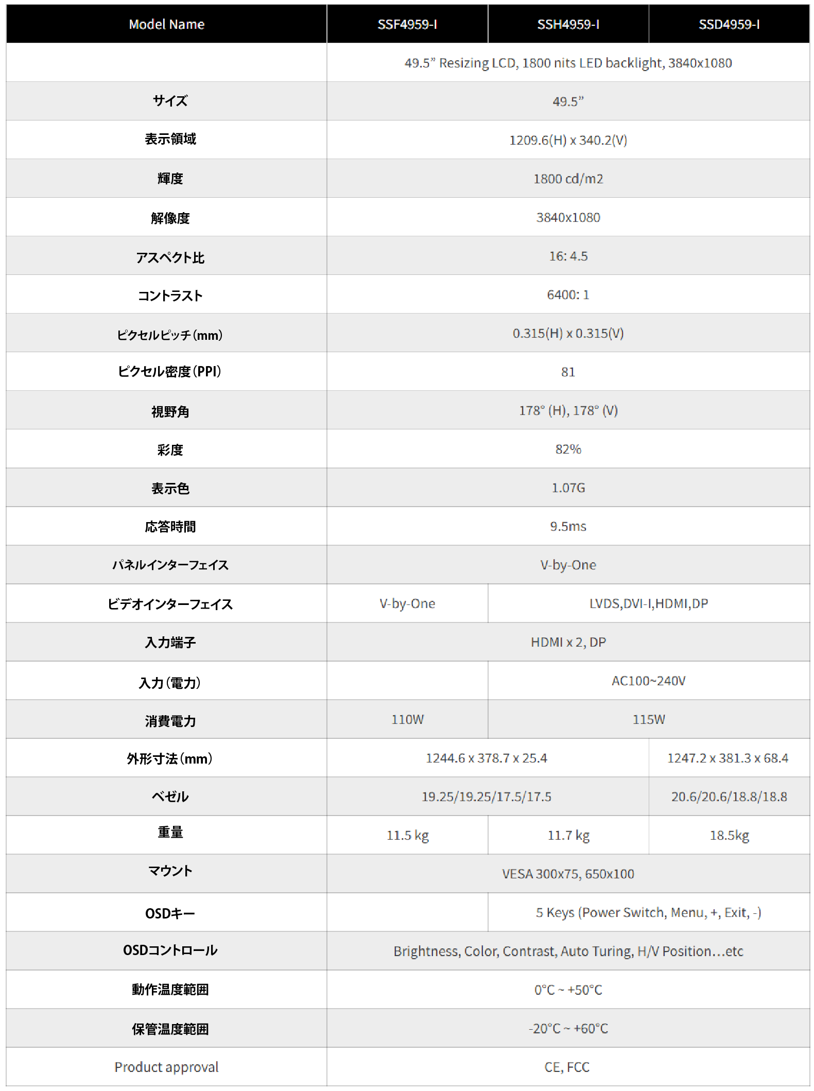 49.5インチ、1800nit、解像度3840x1080のウルトラワイド液晶ディスプレイ。